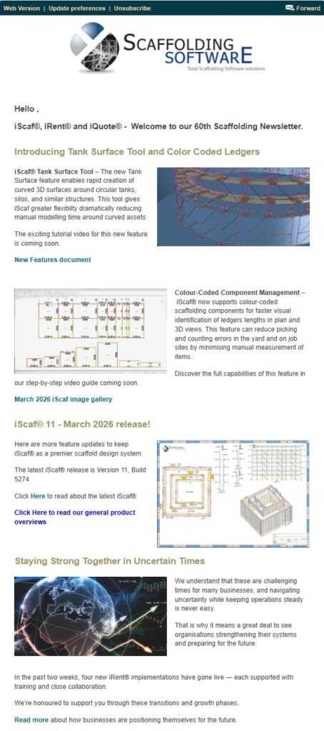 iScaf®, iRent® and iQuote® – Welcome to our 60th Scaffolding Newsletter! 16 March 2026